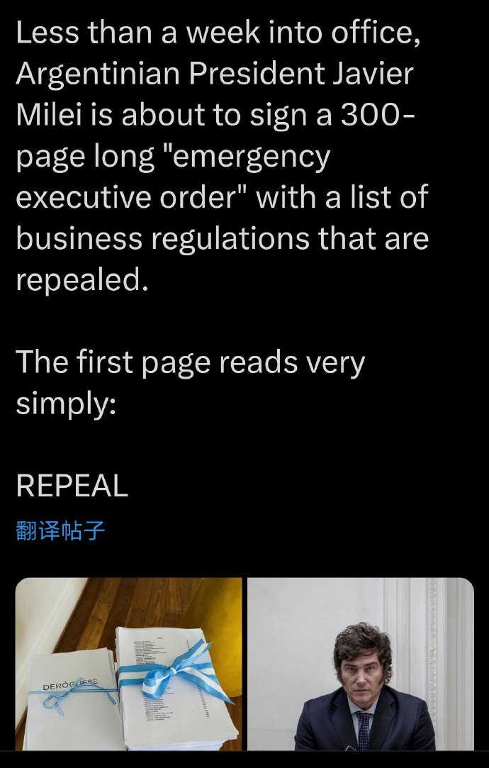 阿根廷的最终结果暂且不论,米莱上任这一周来的动作,的确很“奥派”。