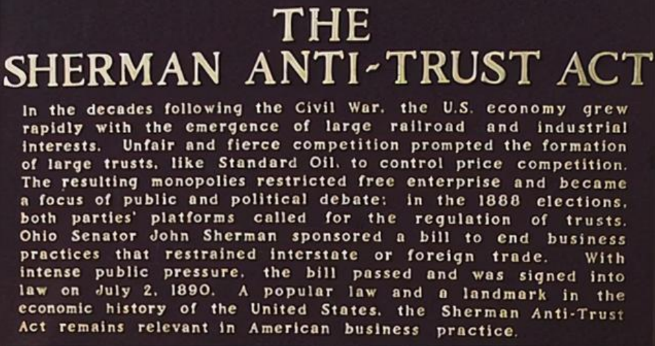 (《谢尔曼法》开篇讲述大型利益集团出现会带来不公平竞争)