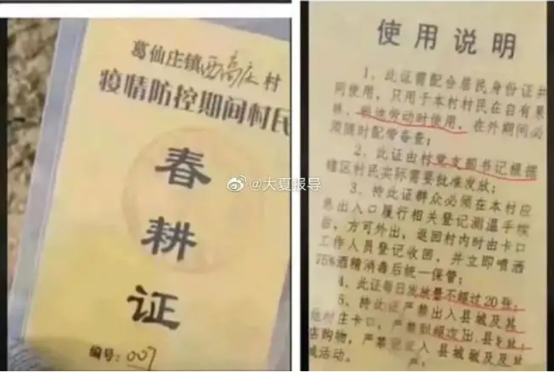 在某些地区,农民日常限制在家里,一个村同一个时间只能有少数人「错峰耕种」。有地区甚至让农民穿上不适合耕种的防护服。更有农民深夜偷偷出来「恶意耕种」,还可能被防疫人员抓捕而要求当众检讨。这方面,很多官媒也跟进报道,指出极端做法对粮食的危害。