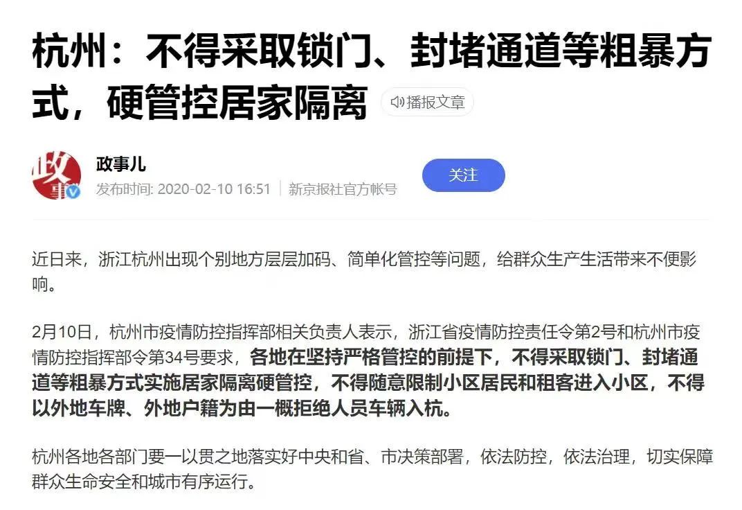 所以,应该首先明确的是,对于场所的隔离和封闭,只有在场所内的人(尤其是病人),“拒绝”和“擅自脱离”的前提下,才应该有强制手段,也才会有所谓的“硬”的可能(封闭或隔离一定的场所)。在场所居民本来已经配合居家隔离的前提下,启动所谓的强制隔离,是不符合《传染病防治法》有关“疫情控制”(第四章)的根本目的的。