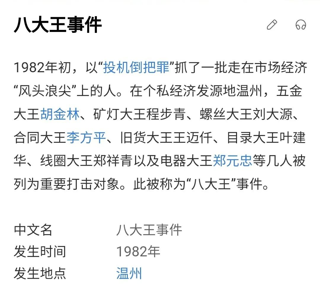 1982年初,在全国掀起「严厉打击经济领域的犯罪活动」,以柳市「八大王」为代表,在温州抓捕1500名私营企业家。