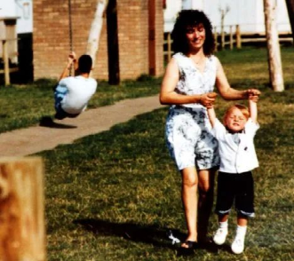 老照片:丹尼斯带着小詹姆游玩