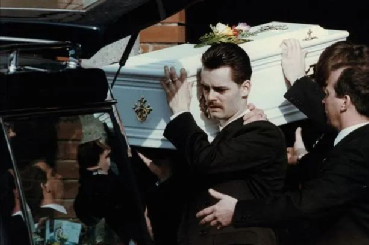 葬礼上,父亲拉尔夫抬着小詹姆的棺材