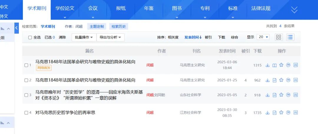 再看论文内容,以闵超博士最重要的获奖论文《马克思1848年法国革命研究与唯物史观的具体化转向》为例,我特意找来论文仔细拜读过。一直读到参考文献的部分,我惊掉的下巴还是没有合上。
