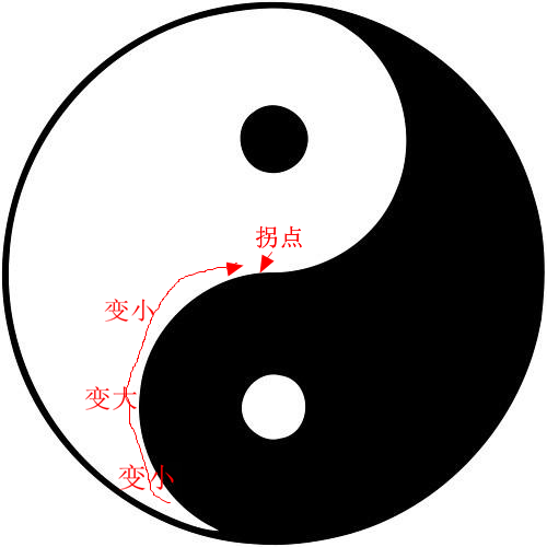 在太极的那个圆圈上你任意取一个坐标点,不但表示了“阴阳”两种力量的比例,而且代表了一种趋势。