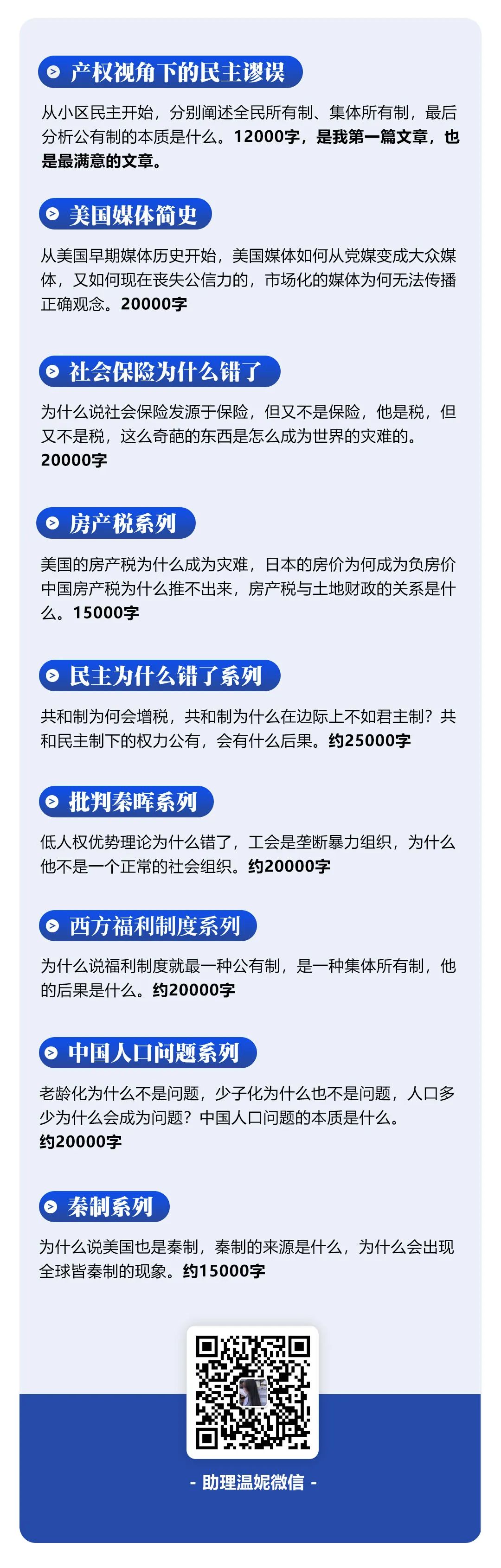 两年自媒体写作,传播经济学,200多万字文稿,大都消失不见(炸了四个号了),想看的朋友打赏68元,即可获得全部文稿,扫码联系助理即可。