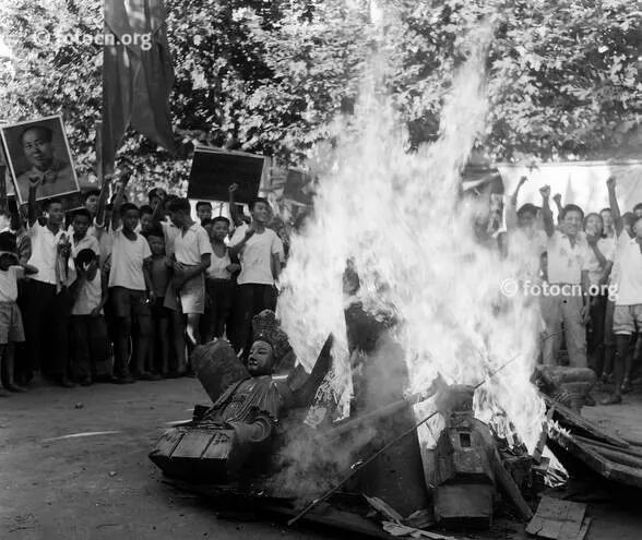 各地红卫兵竞相效仿,冲击寺庙、古迹,焚烧书籍,