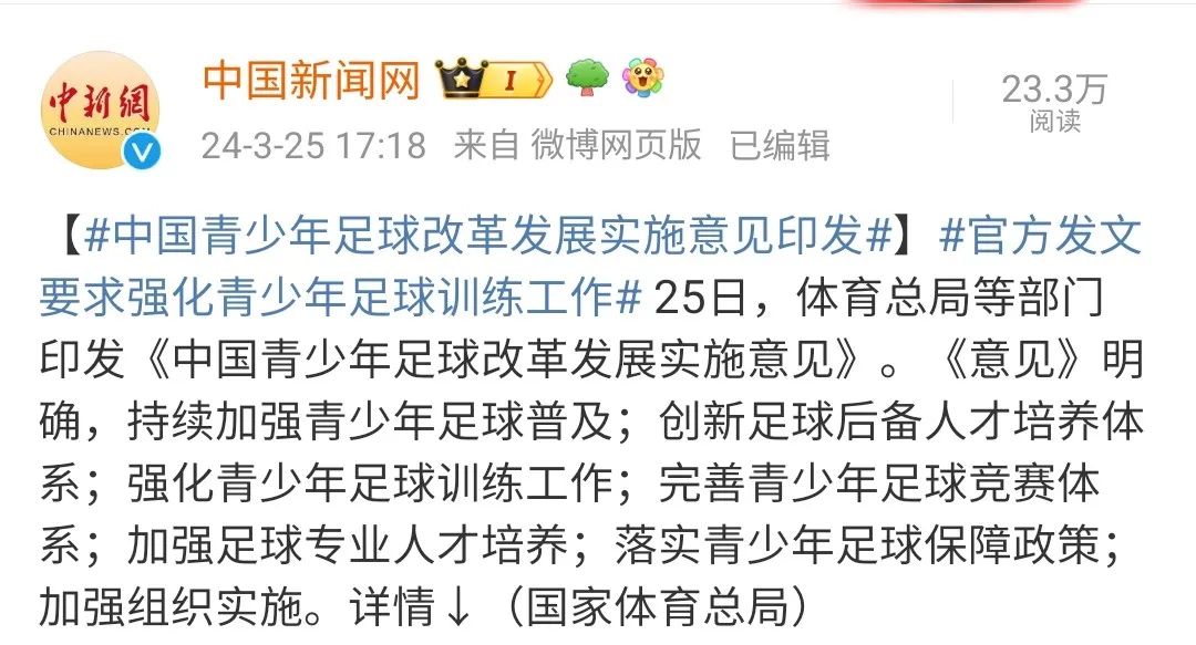 在球迷们的呼吁下,有关部门又出台了《中国青少年足球改革发展实施意见》,要从娃娃抓起,振兴中国足球。