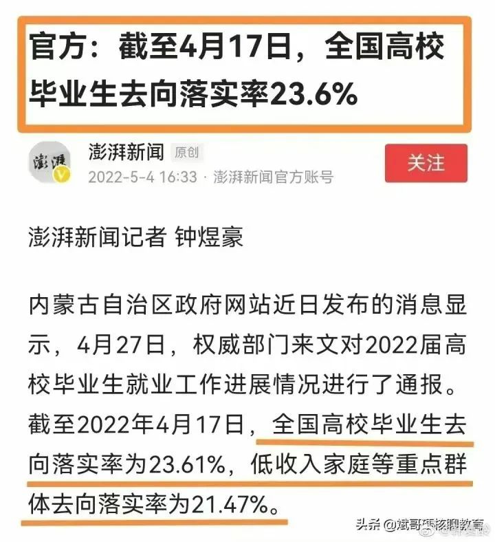 假就业早已不是新闻,但是到了2022年,假就业也没那么容易了。今年公布的就业率只有23%,其中一部分可能还是靠父母关系找到工作的。