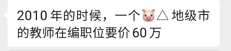 昨天有一位群友说:「2010年的时候,一个珠三角地级市的教师在编指标要价60万」。比这更好的岗位,当然也会更贵。