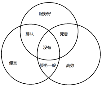 不可能三角理论,将美国定义为贵、服务好、高效。