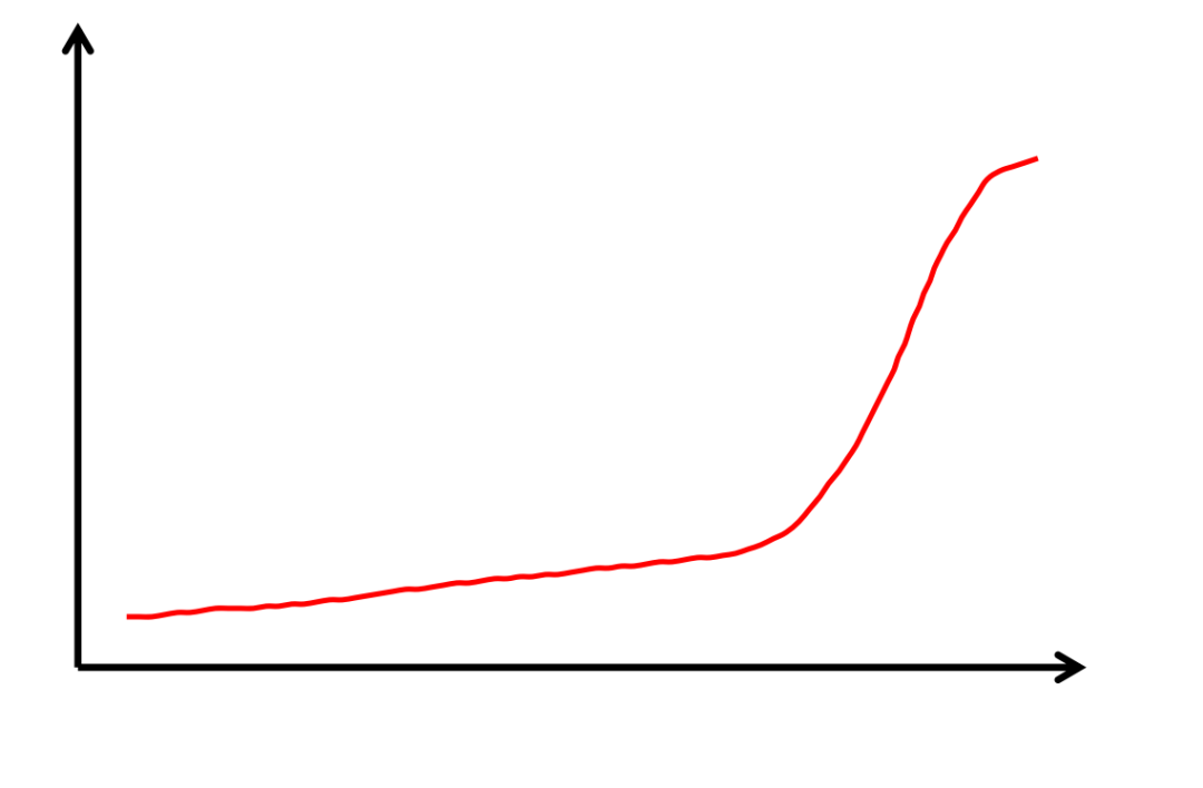 坚持一段时间发现没效果就放弃了,其实几乎所有的成长,都是非线性爆发式的,也就是前期默默无闻,突然间就来个指数级大爆发,大部分人在学校没人逼着,熬不到爆发就放弃了,到了工作后被逼着反而有了突破,不过跟别人相比慢了一拍,事实上这类人可能所有事都慢一拍,因为没人看着的时候,总也坚持不到那个转折点: