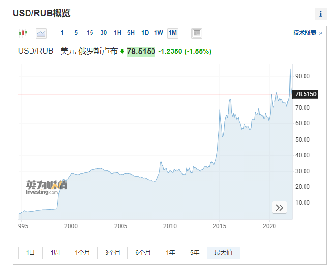 卢布与美元的汇率叫通货膨胀,近20年来贬值4倍。