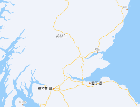 在苏格兰和英格兰交界的地方,就是苏格兰的爱丁堡和格拉斯哥,可以说是英格兰和苏格兰边缘地带,但是又是苏格兰比较大的城市。