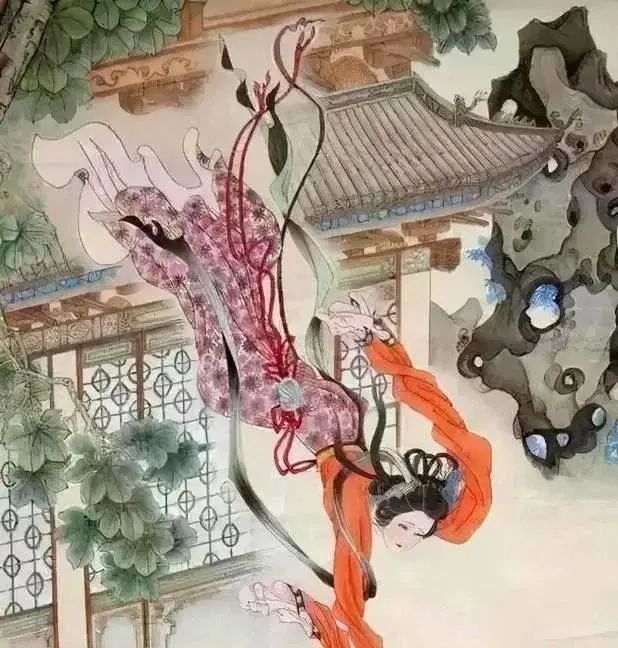 古人答:“因为她从很高的地方摔在地上了啊,就像落花从树上跌落地上。”