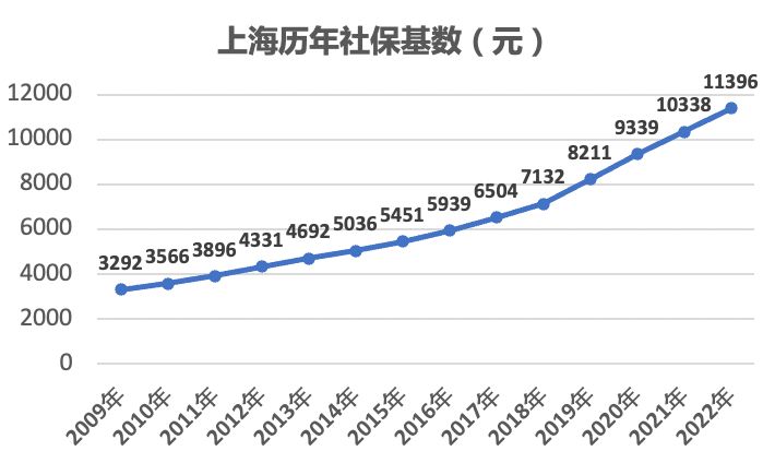 2022年上海社保缴费基数和2021年10338元相比,上升幅度10.2%。
