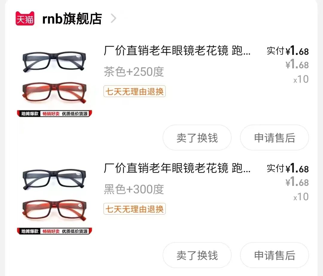 我戴的眼镜是1.68元的。你没有看错数字,我也没有写错小数点,真的是1.68元人民币。每次出门都会抓一把眼镜扔在袋里,一路上眼镜可能忘在宾馆、酒吧、咖啡厅、公厕,由于有充分的备用,并不担心。