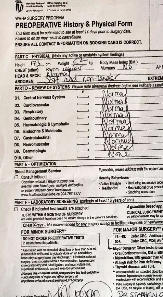 其一就是我们在2023年9月15日去看过家庭医生,这位家庭医生从长相看似乎是中东裔,但也有可能是欧洲裔,他对我们全家五口人进行了体检,包括对张敏的胸肺部进行听诊,结论是她身体良好。然而,体检的这一天,距张敏因晚期肺癌病逝,仅两个半月而已。