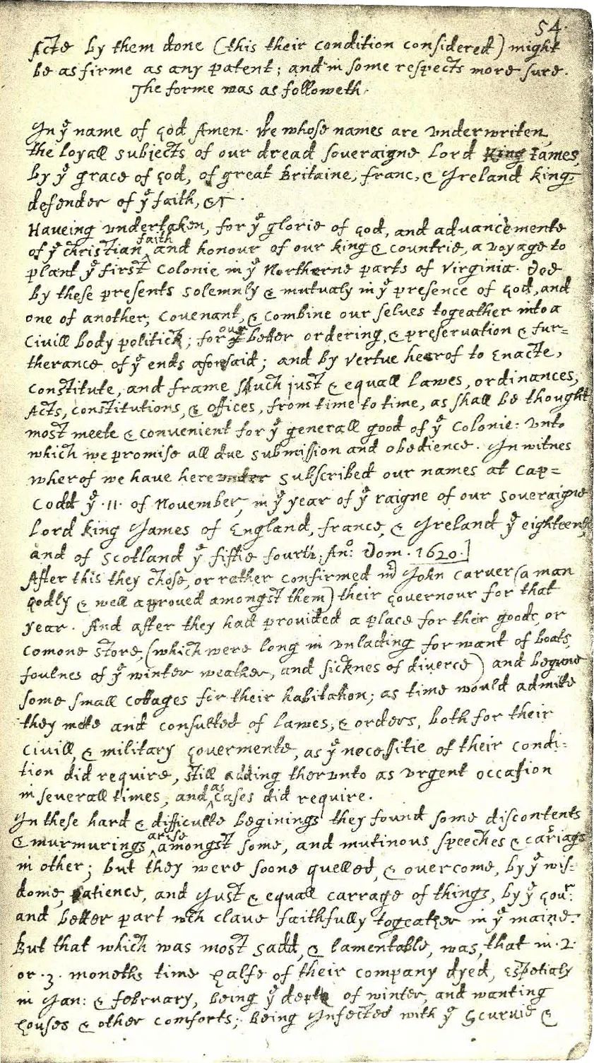 在路途中,这些乘客们在会议中签署了著名《五月花号公约》;这个公约成为160年以后美利坚合众国成立时的宪法精神基础。