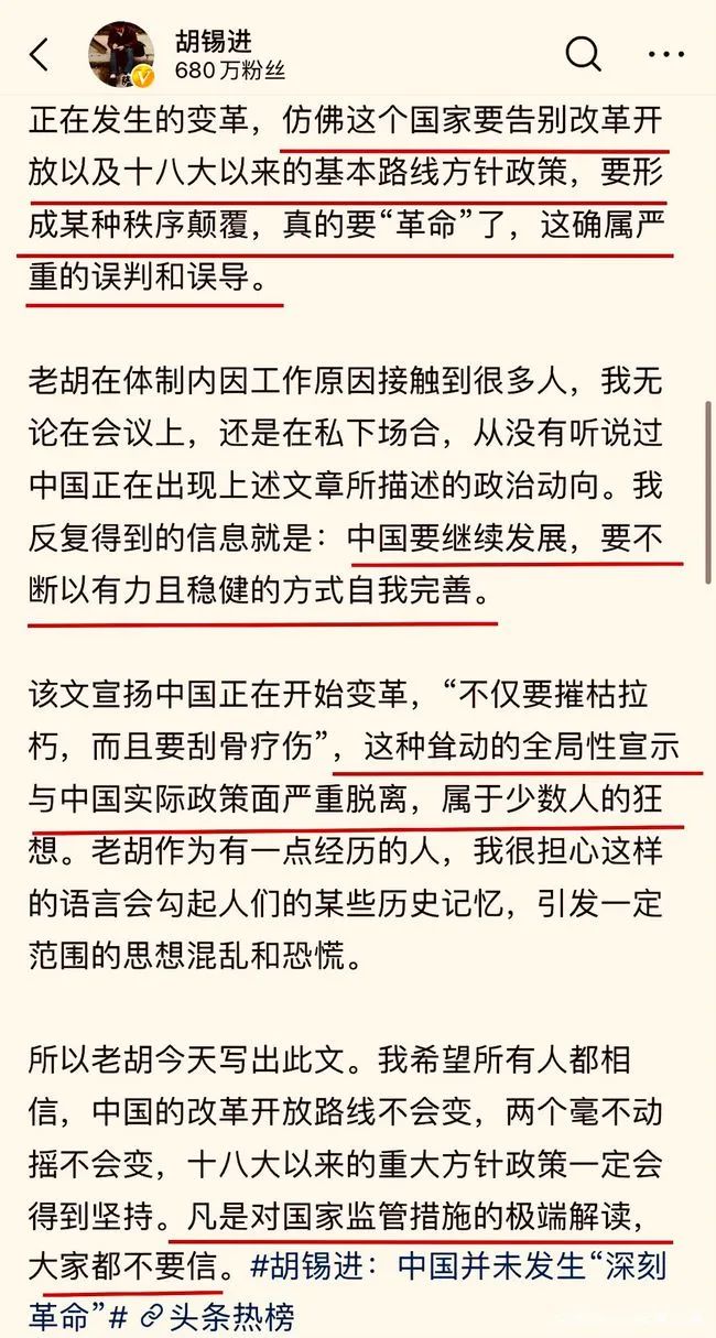 中国正在发生重大变化,从经济领域、金融领域、文化领域到政治领域都在发生一场深刻的变革,或者也可以说是一场深刻的革命。这是一次从资本集团向人民群众的回归,这是一次以资本为中心向以人民为中心的变革。因此,这是一场政治变革,人民正在重新成为这场变革的主体,所有阻挡这场以人民为中心变革的都将被抛弃。