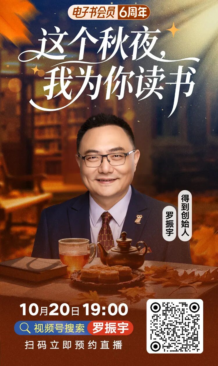 10月20日19:00,得到创始人罗振宇会在直播间和你分享“2025年必读的十本好书”。内容将贯穿个人成长与时代洞察,愿这份书单伴你温暖入秋。