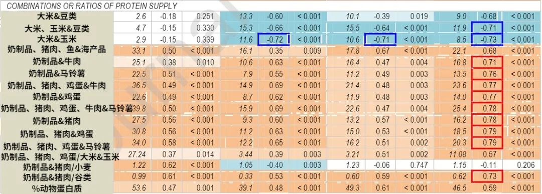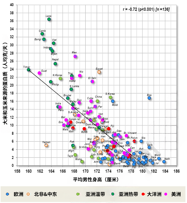 而来源于谷类、豆类、玉米中的蛋白质则与身高呈现负相关(以非优质蛋白为主)。