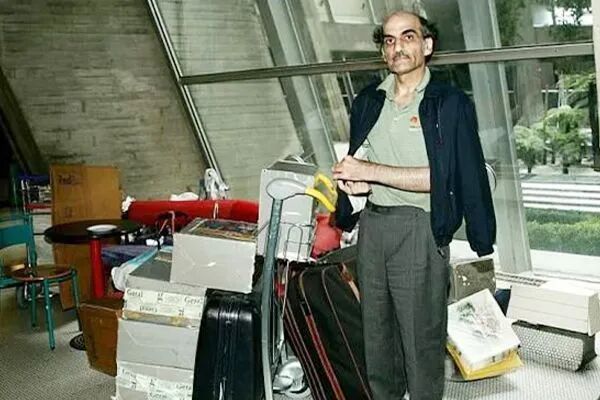 他只带了一个小皮箱,里面装着换洗的衣服、一把剃须刀和已经作废的身份证明,所以只能睡在候机大厅的椅子上,在卫生间里洗澡,靠为路过的乘客服务生活。