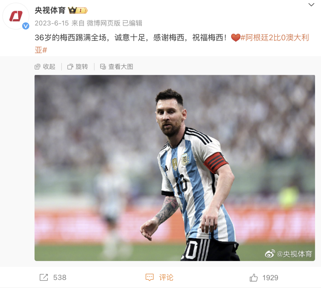 最后,借用下央视体育去年的微博,感谢梅西,祝福梅西。