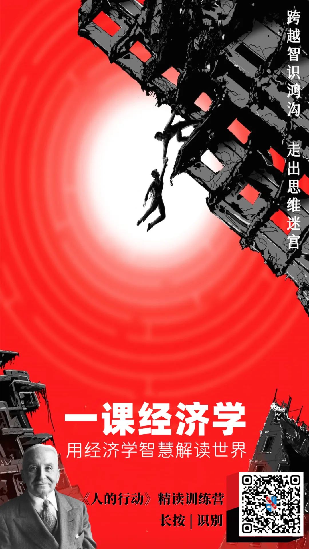 欢迎读者长按识别下方二维码,了解详情加入经济学课程——“零基础 无数学 你也可以学好的经济学”,尤其是逻辑彻底,让人折服的奥地利学派经济学,助你打通经济学思维的任督二脉,享受三观重建的快感。多一个人了解经济学,繁荣就多一分保障。