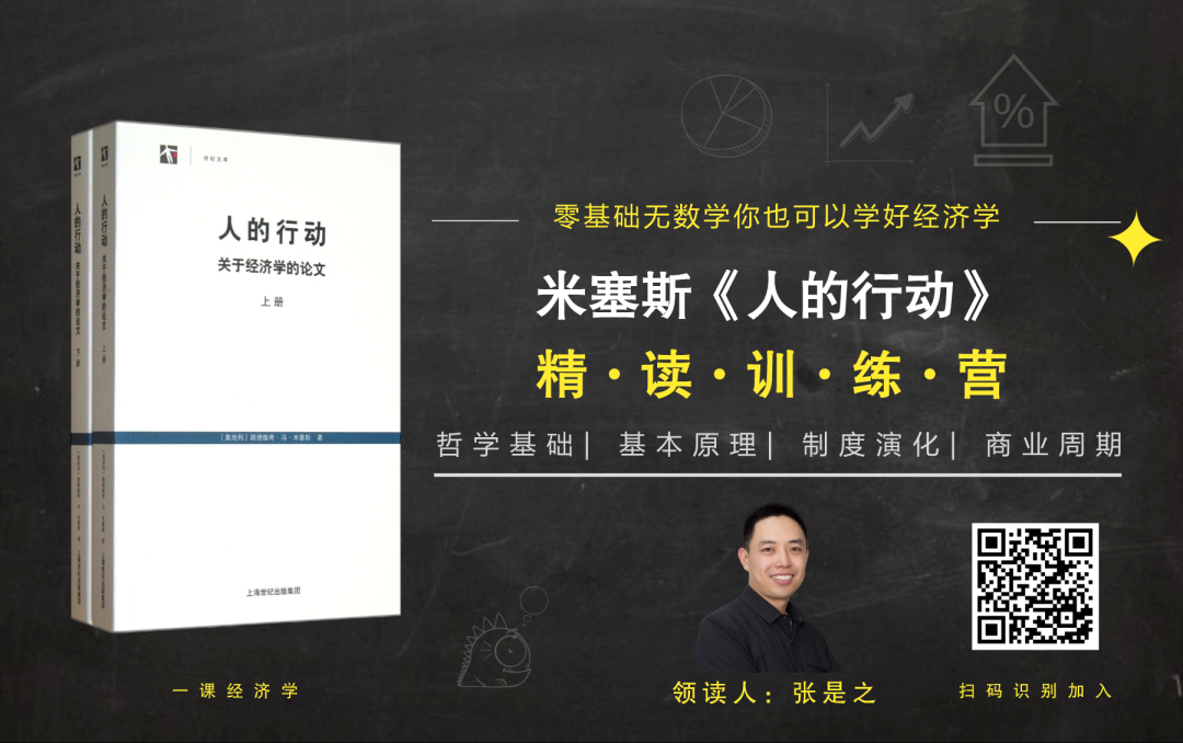 【一课经济学 | 智慧集结号】一年精读四本经典。知识点一点点的过,一点点的学。从哲学基础、方法论到基本公理、定理和规律,从个体行动再到宏观层面的经济周期,奥派经济学的体系是庞大而又不失精致的。从第 1 季到第 4 季,在智识之旅上风雨兼程、跋涉探险,你我继续前行!长按以下二维码识别加入。![]()