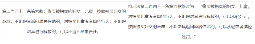 《刑法》第二百四十一条第一款 收买被拐卖的妇女、儿童的,处三年以下有期徒刑、拘役或者管制。