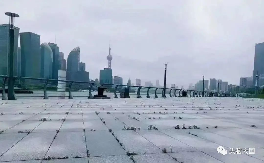 前几天,有网友发了一张外滩长草的照片: