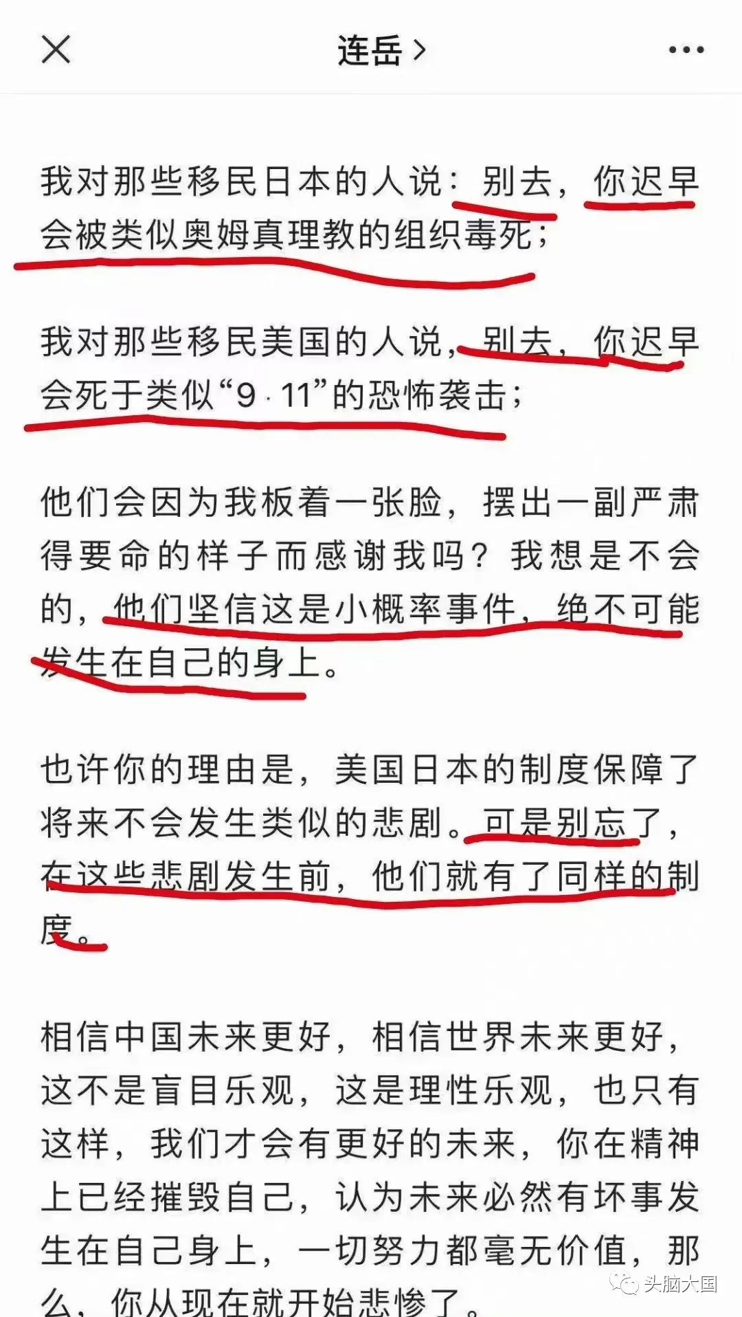 比如,你不可能要求一大群人长年累月无脑地听从事无巨细的一切指令并且不允许任何质疑,又要求他们要在各自的工作领域以独立思考搞出创新成果来赶英超美、让世界对我们竖起大拇指。