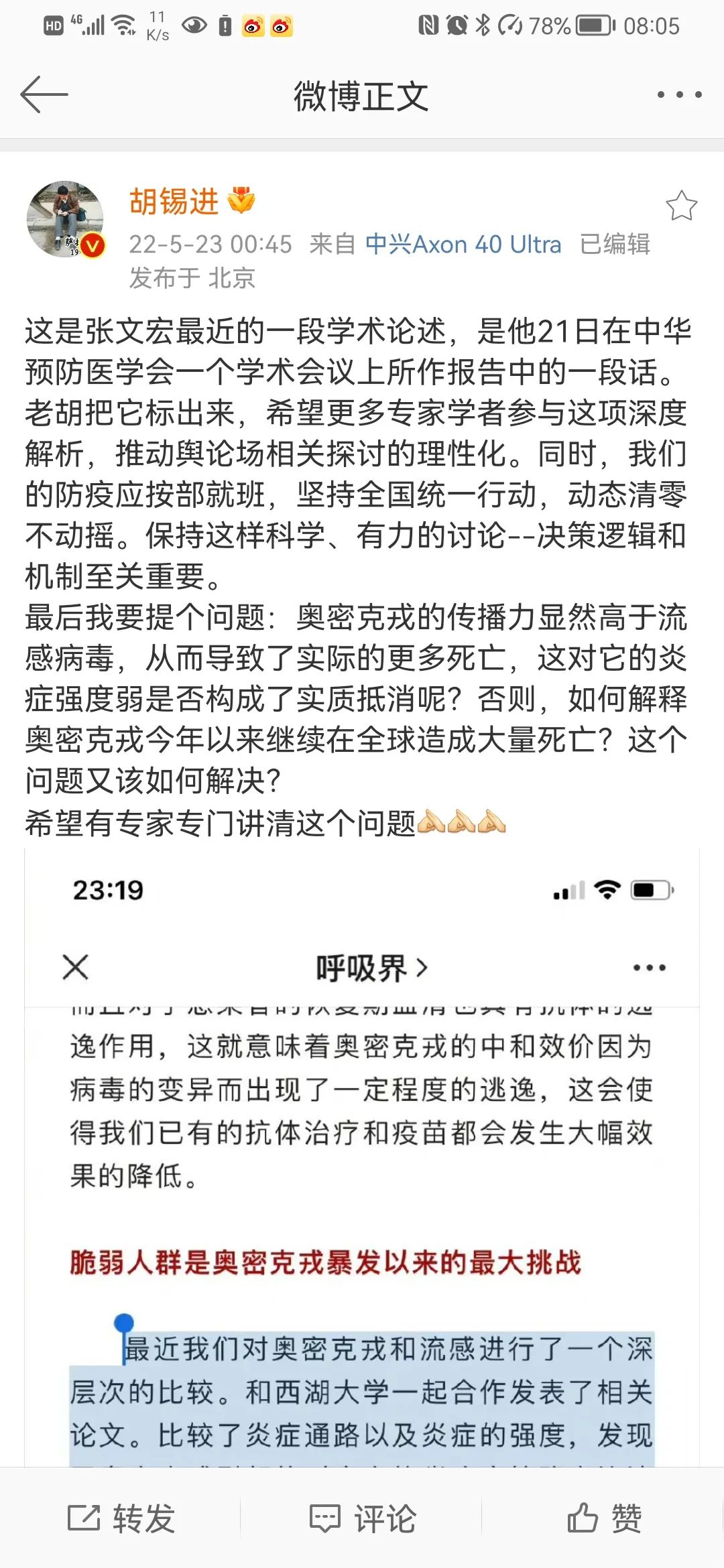 今天老胡又发微博,讨论奥密克戎是不是流感。