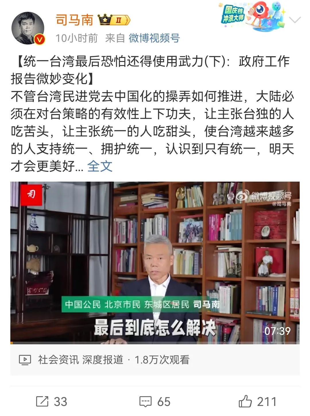 你再看看天天在指点世界江山的司马南。