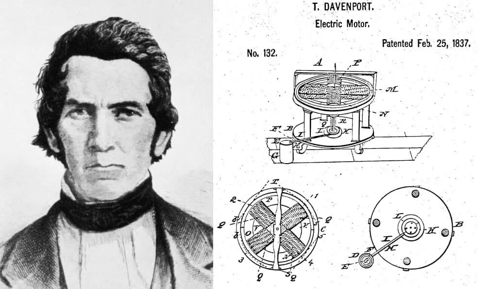 这一年,美国人托马斯·达文波特(Thomas Davenport)制造出第一辆直流电机驱动的电动汽车。1837年,托马斯因此获得美国电机行业的第一个专利。