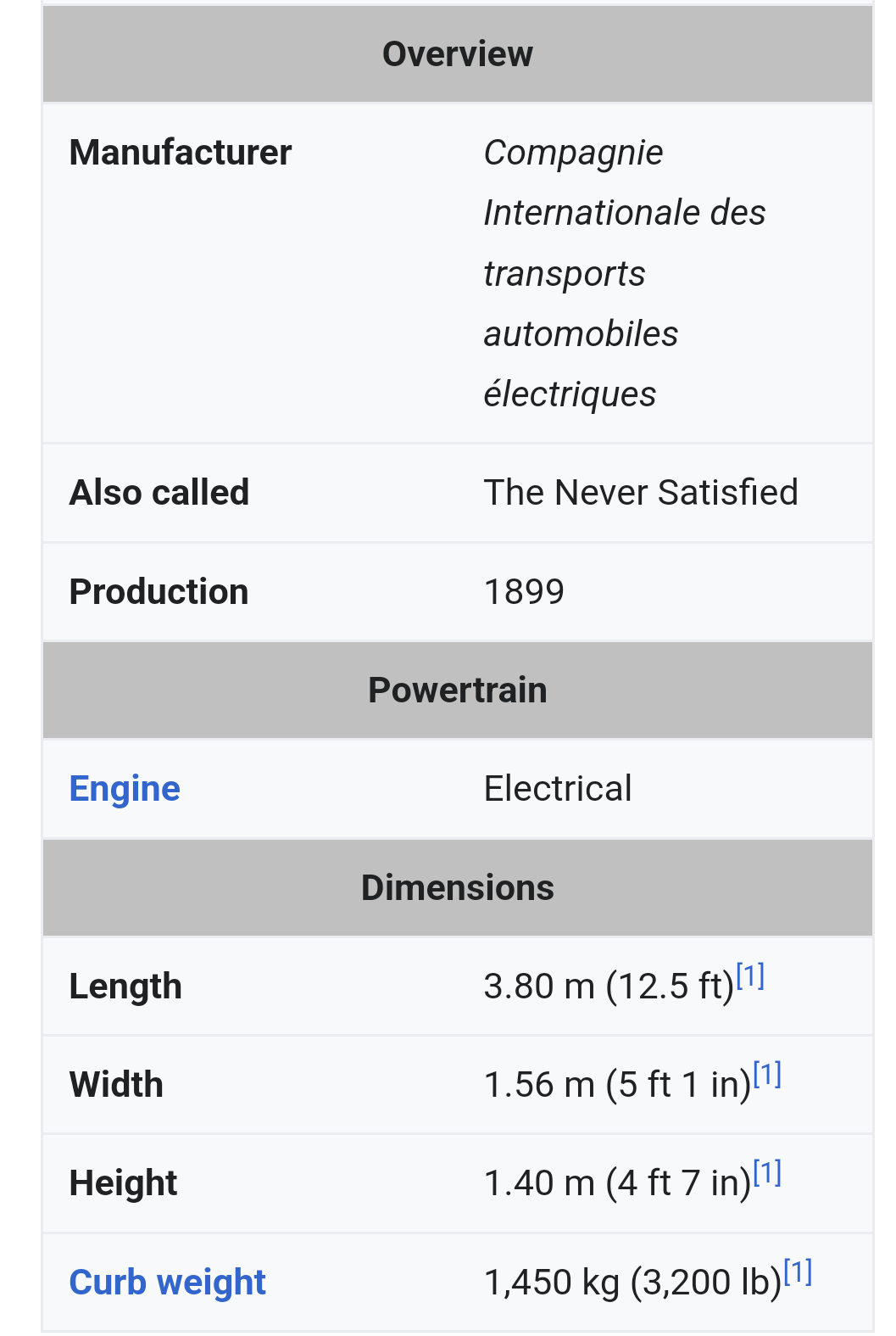 1899年4月29日,在法国巴黎附近的一个地方,这辆车以时速105公里创造了新的记录,成为世界上第一辆时速超过一百公里的汽车。