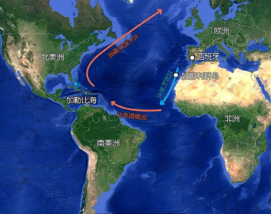请问,在风帆船的年代,你从欧洲到美洲,你应该走什么路线?