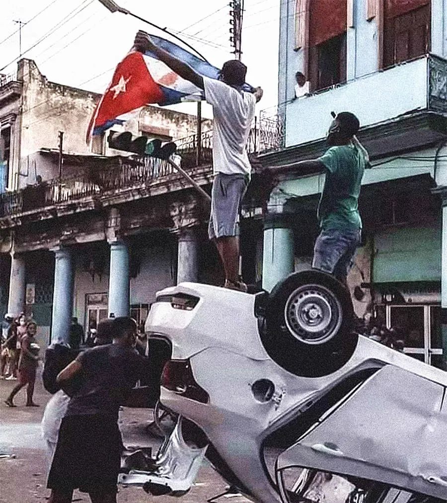 到2021年年中,经济条件差的人群,走上街头表达不满,古巴骚动了。