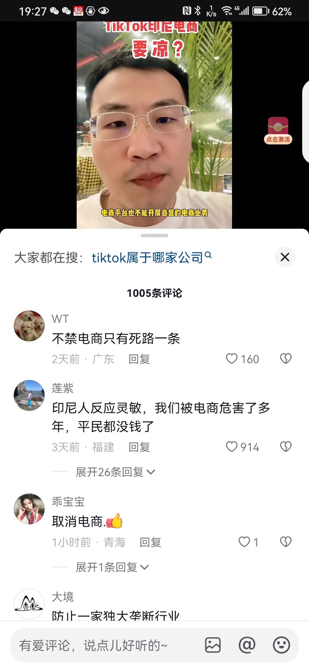 那么印尼政府为何要封禁TikTok的电商功能呢?答案就在中国网友的评论区里。