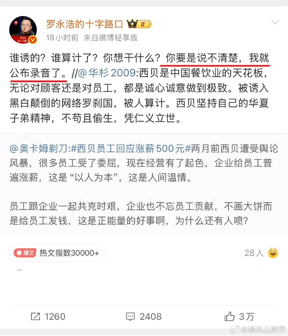 咱们退一步讲,就算华与华的设计真的丑,就算西贝的预制菜真的有问题,轮得到你罗永浩来当这个“道德法官”吗?