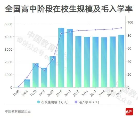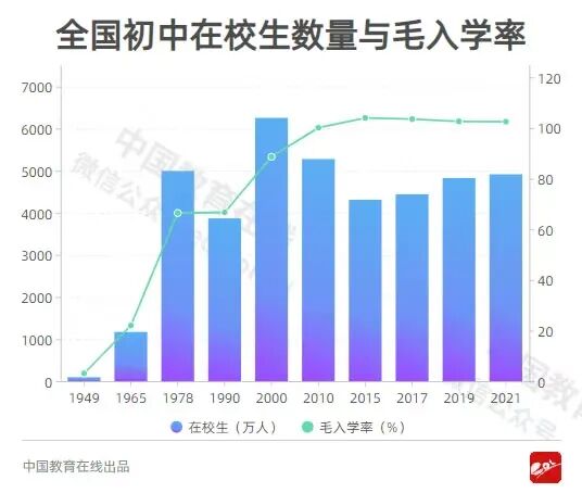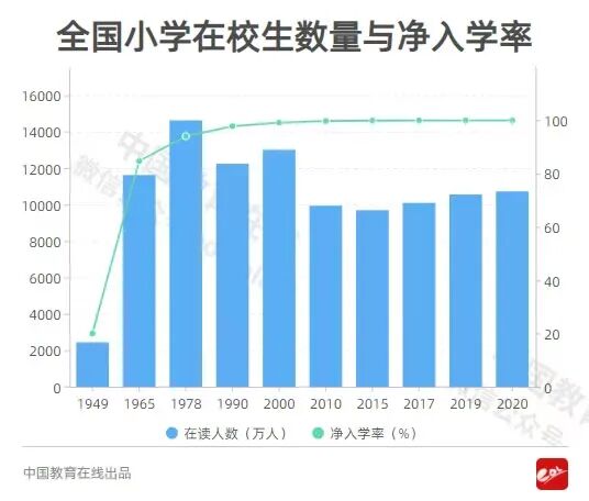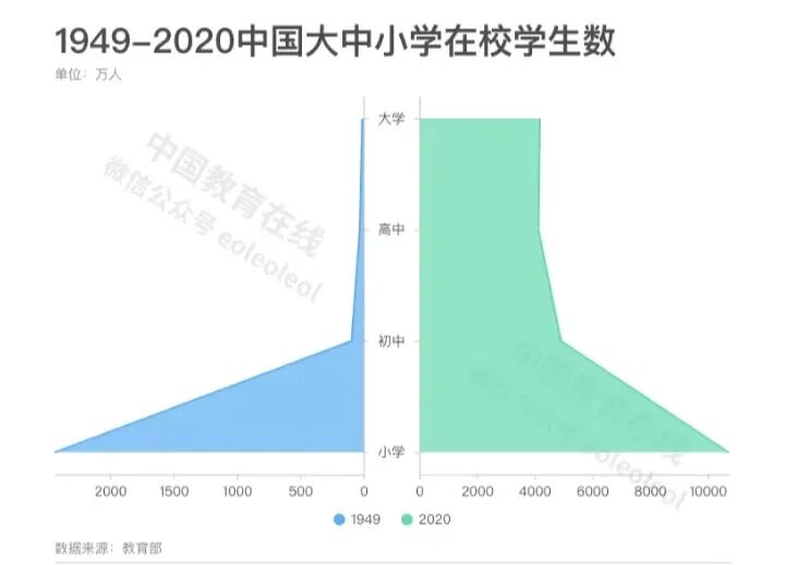 1949年,全国5.4亿人口约80%不识字,只有2400多万名小学在校生,100多万名中学在校生,10多万名大学在校生。