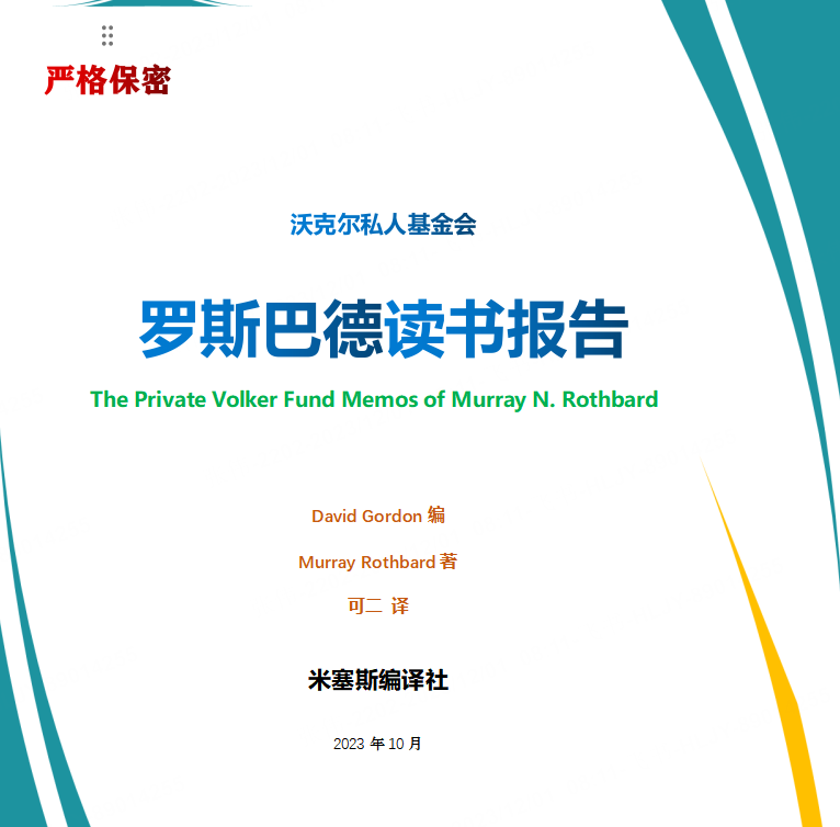 可二编译 摘自《严格保密:沃克尔基金会罗斯巴德读书备忘录》