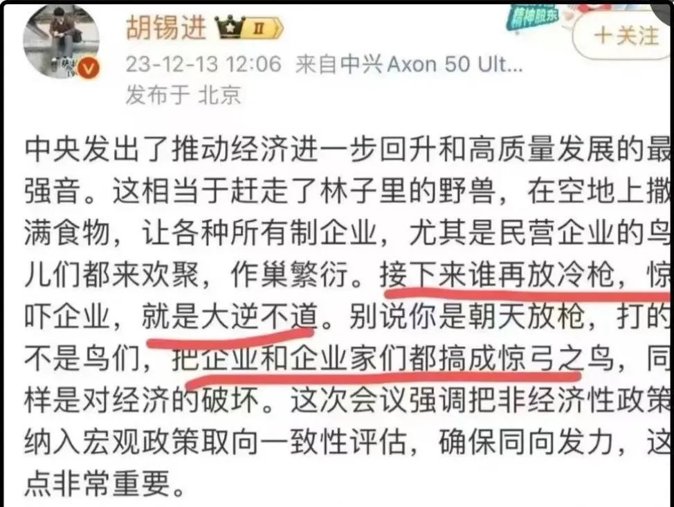 老胡是希望经济好一点的,希望社会更宽松的,这一点是确真的。这在当前,已经是难能可贵了。但是他又是个建制派,所以必定总是从善意的角度去解读有关部门的动作,以为他们都会从经济的角度看待问题。