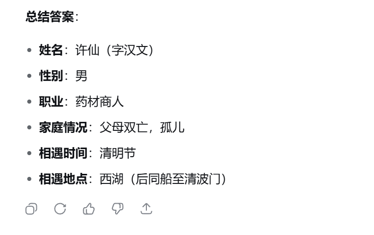 我们将里面许仙遇到白娘子自报家门的唱段给AI,让AI判断一下:
