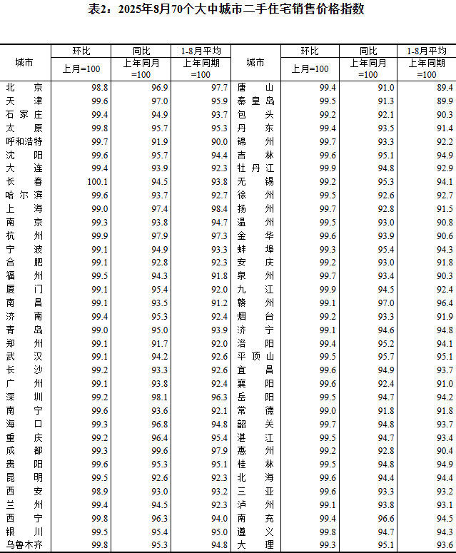 9月15日,国家统计局公布了全国70个大中城市8月份房价指数变动情况。