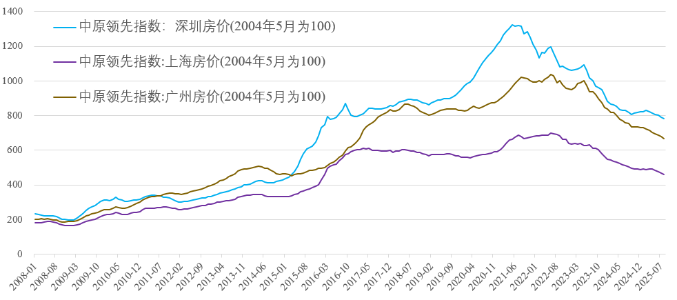 按照中原领先指数,北上广深这4个一线城市中,从2021-2023年的房价最高点到现在,只有上海的跌幅还不到1/3(但跌幅也超过了30%)。
