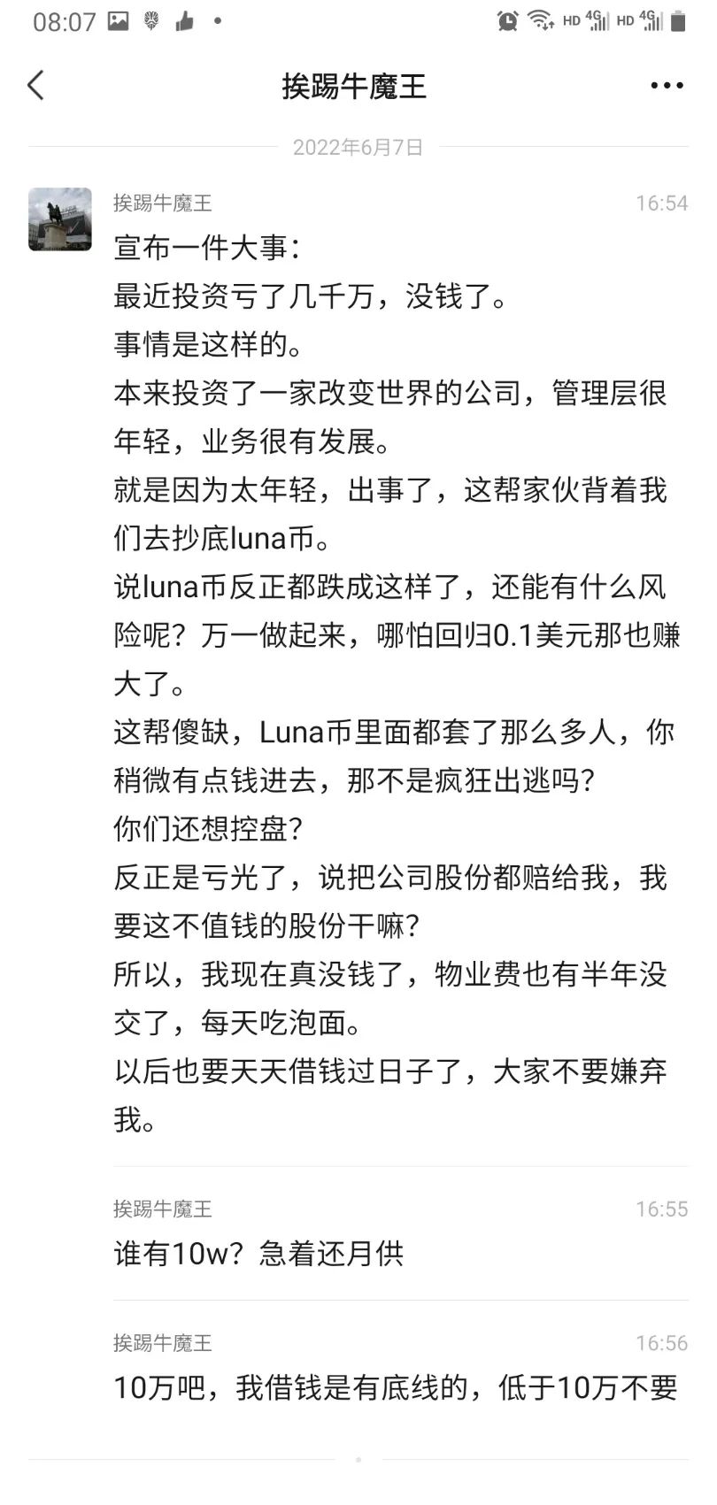 今天,我在几个群看到同一个聊天记录。说话的人是著名大V「挨踢牛魔王」。