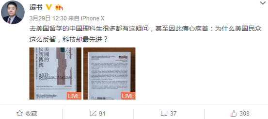 美国确实存在反智现象,这一点,中国互联网上无论是亲美的还是反美的,都要承认。
