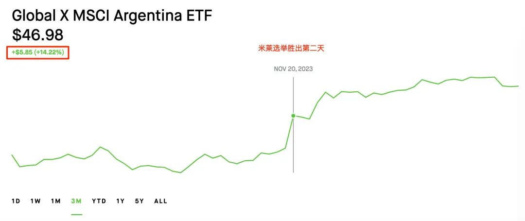 选举胜出第二天,这只在美国的阿根廷ETF基金大涨,反映着国际资本对米莱的看好。